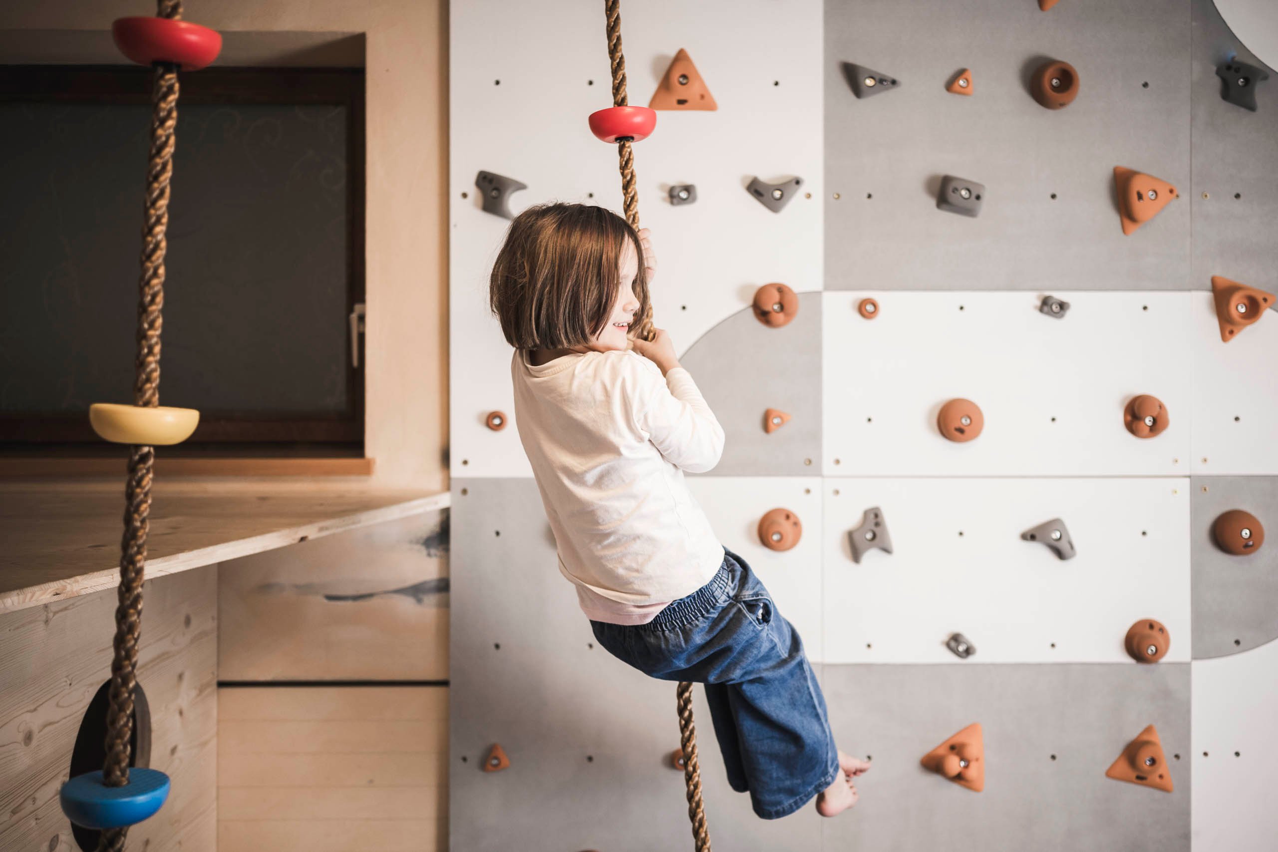 Von wegen Langeweile! Trampolin, Tischtennis, Billard, Darts, Piratenschiff, Ritterburg, Bällebad, Spielkonsolen – und natürlich ganz altmodisch: Brettspiele. Die Boulderwand haben wir übrigens selbstgebaut, als Kletterfans der ersten Stunde und auch heute matchen wir uns noch hin und wieder am Tischkicker. Mal ehrlich, wer groß wird und trotzdem ein wenig Kind bleibt, hat einfach mehr vom Leben.