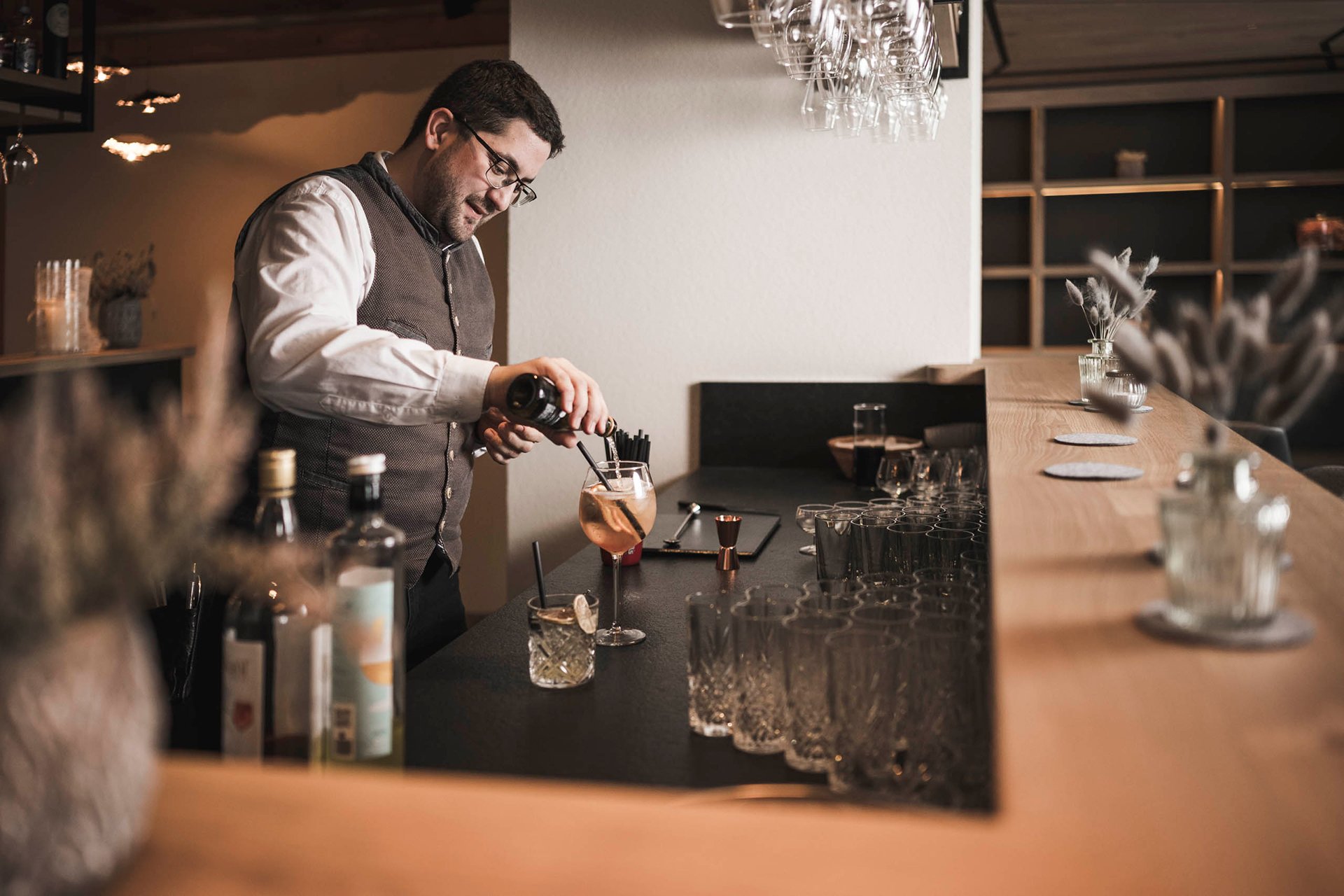 Wie wär’s mit einem Gläschen „Zirberol“ in unserer gemütlichen Bar? Einem saftigen Steak beim Grillabend im Grünen? Oder doch lieber spicy Tempura Garnelen mit sonnengereiften Tomaten im lichtdurchfluteten Restaurant? Und danach ein Vogelbeerschnaps als Digestif in der urigen Montafoner Stube.