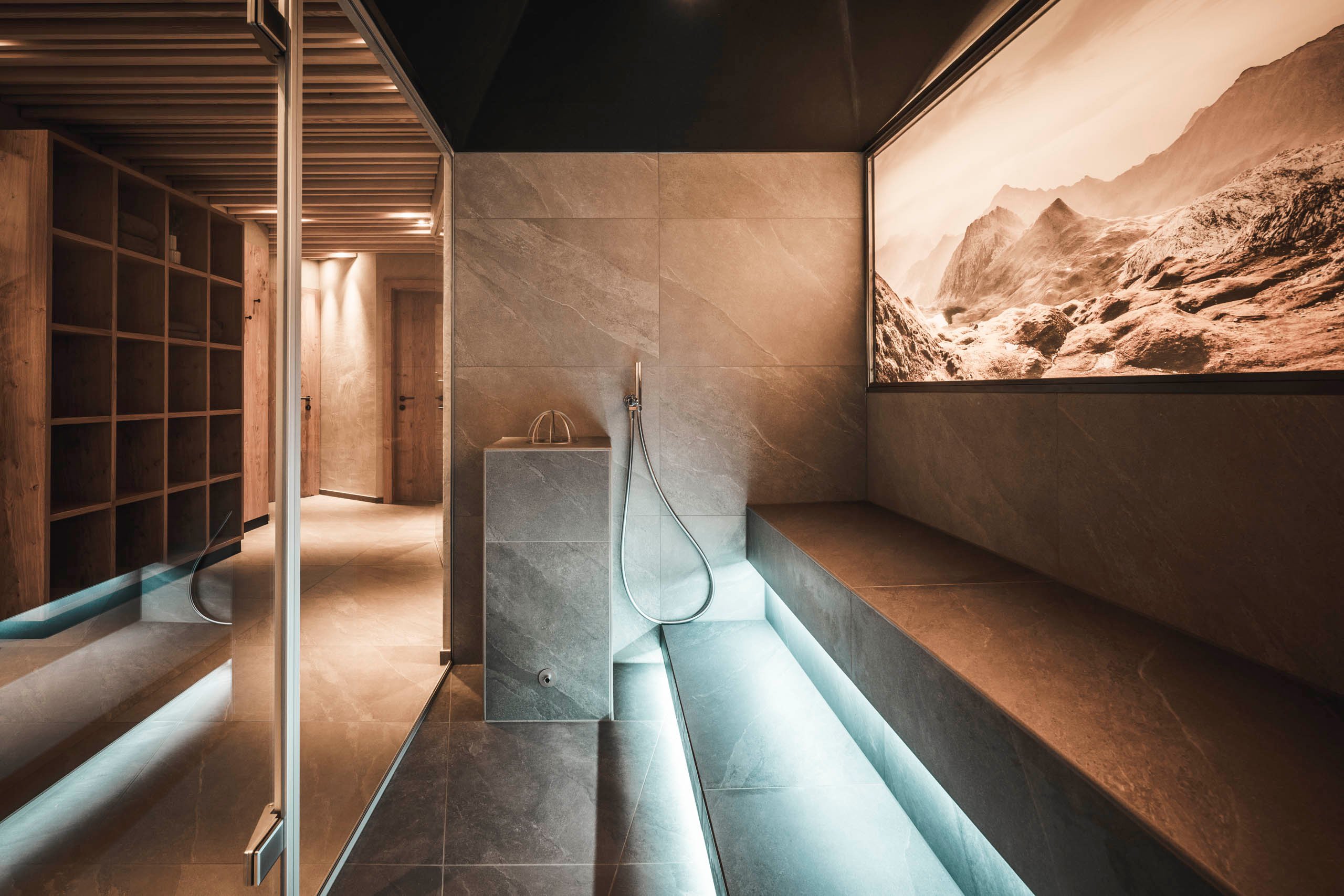 Eigentlich wohnt die Stille nicht auf den Gipfeln der Berge, sondern im Herzen der Menschen. Unser Wellnessbereich ist ein Ort der Regeneration, an dem du dir bewusst Gutes tust. Die wohltuende Wärme in unseren Saunen und Dampfbädern hinterlässt einen inneren Nachklang. Und im lichtdurchfluteten Indoorpool ziehst du deine Bahnen mit Blick auf die Alpe Rongg – auch Kinder dürfen hier nach Herzenslust abtauchen. Im Sommer entspannst du auf unserer Liegewiese – die wir übrigens sorgsam mähen, damit Bienen summen und Blümlein duften. Im Winter lockerst du deine Muskeln in der urigen Schwitzstube. Und deine Kräfte aktivierst du im Fitnessraum. Warum man sich in unser SPA verliebt? Vermutlich wegen der vielen Rückzugsorte – und natürlich wegen der beruhigenden Aussicht auf die Berge.