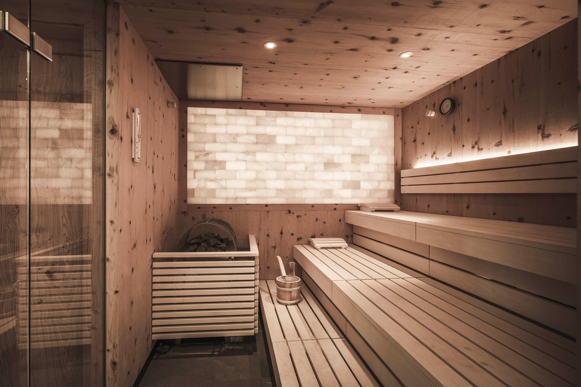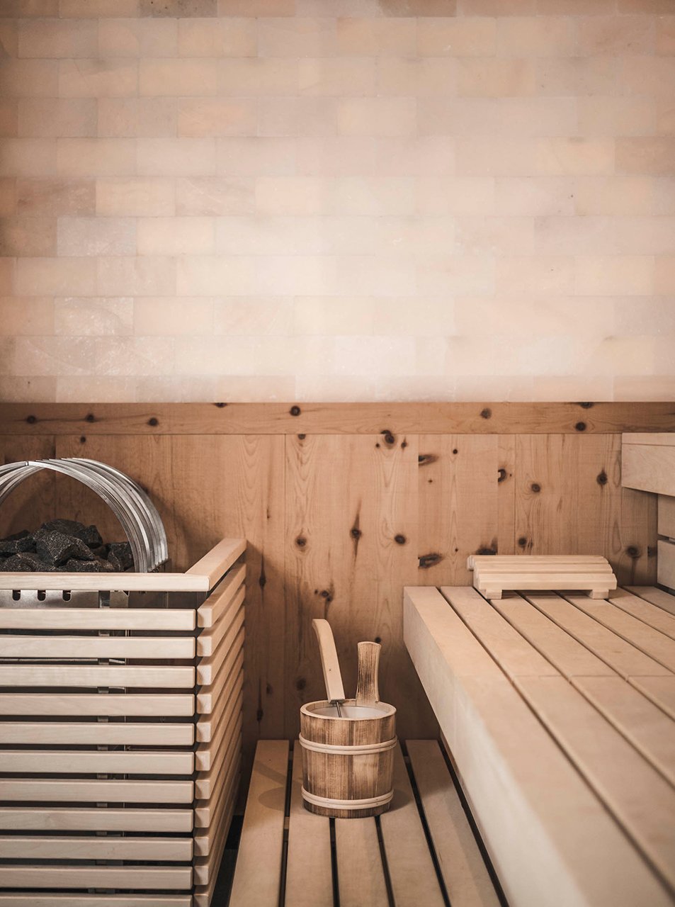 In der Sauna schwitzt der Körper – und die Seele atmet auf, sagt ein altes Sprichwort. Vielleicht liegt es am Duft des echten Zirbenholzes oder am sanften Licht? Vielleicht ist es aber auch die Salzsteinwand, die deine Atemwege regeneriert? Heiße 90 °C steigern das Wohlbefinden und aktivieren die inneren Abwehrkräfte.