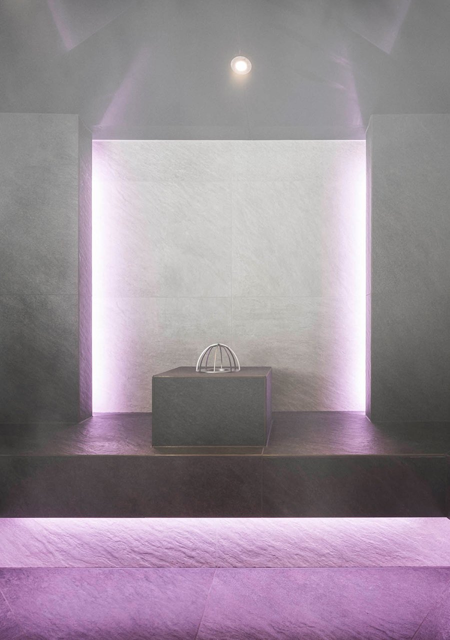Wechselnde Lichtimpulse, sanfte Temperaturen von 40 – 50 °C und hohe Luftfeuchtigkeit. Der feine Dampf wird mit natürlichen ätherischen Ölen wie Zitrone, Rosmarin und Latschenkiefer angereichert. Das wirkt nicht nur befreiend auf die Atemwege, sondern fördert auch die Durchblutung – und beruhigt Körper, Geist und Seele.