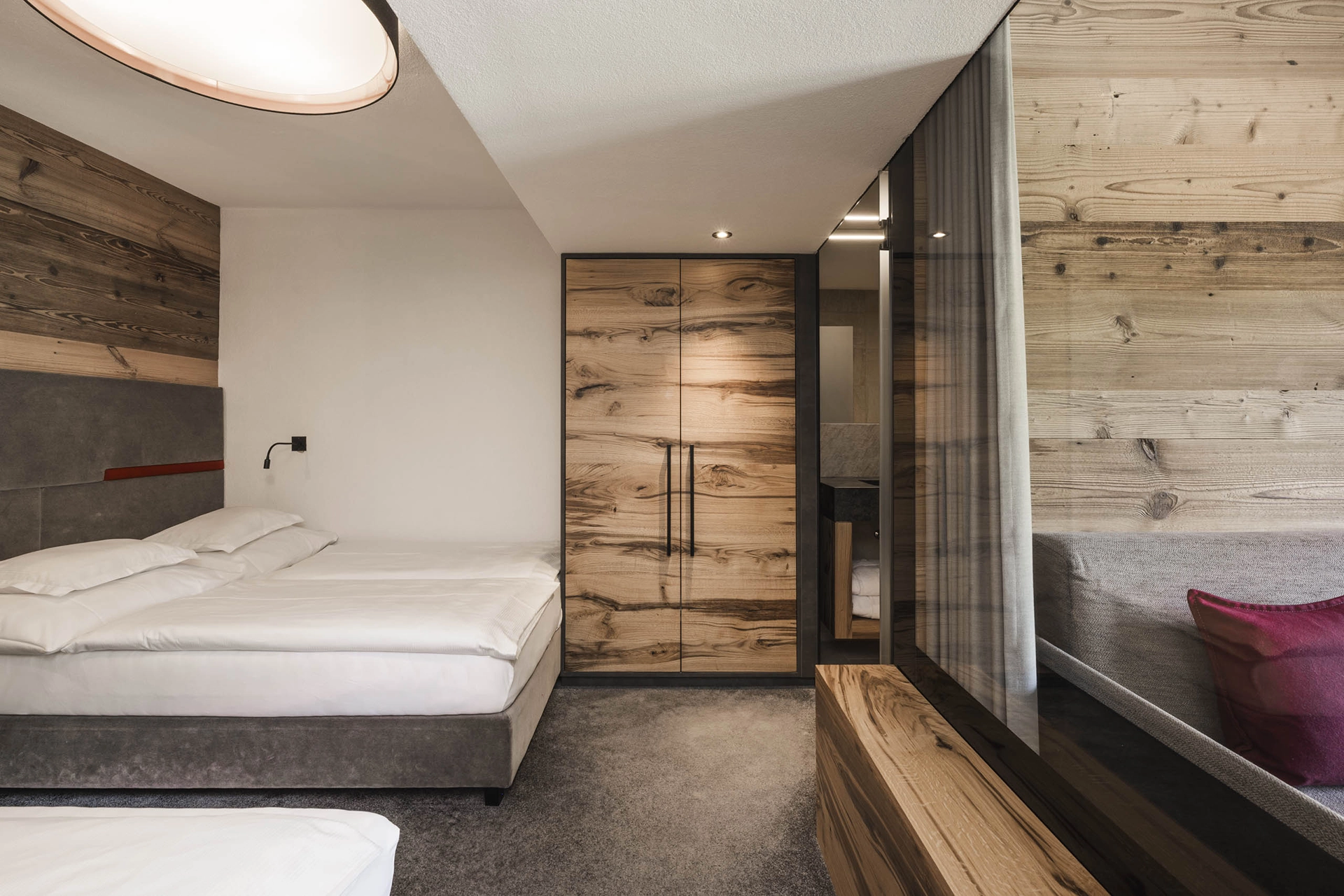 Viel Platz zum Zusammensein und ein fantastisches Raumkonzept – die moderne Platina-Suite bietet auf großzügigen 51 m² jede Menge Freiraum für eine außergewöhnliche Familienzeit. Hier kannst du mit deinen Liebsten gemeinsame Momente genießen, während dennoch jeder seinen persönlichen Rückzugsort findet. Hochwertiges Interieur, zeitgeistiges Design und ein stimmiges Lichtkonzept machen dieses Refugium zu etwas ganz Besonderem. Viel Stauraum bietet der begehbare Schrankraum.