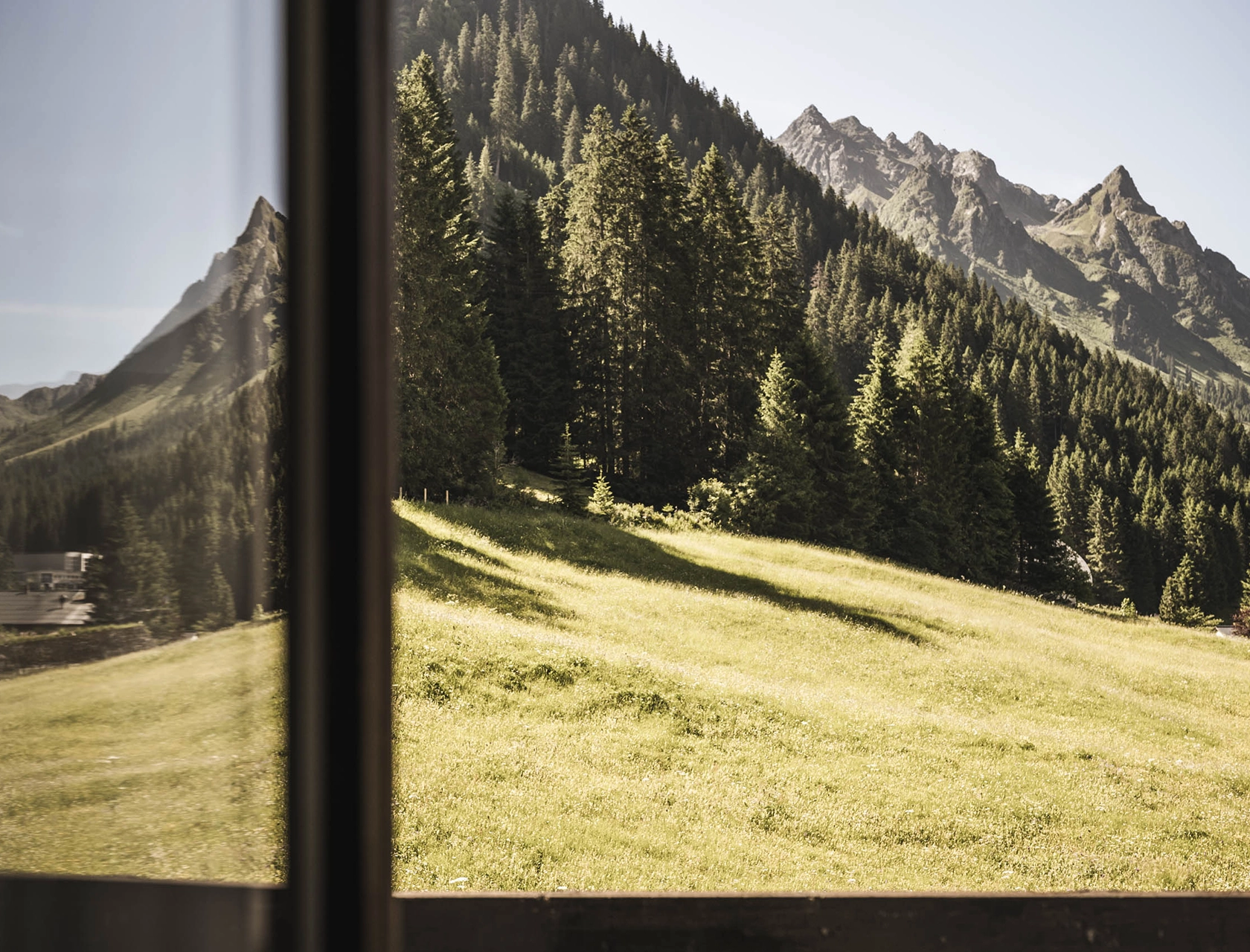 Es ist die beeindruckende Aussicht, die das Schmalzberg-Zimmer zu einem besonderen Hideaway in den Bergen macht. Vom Balkon – deinem ganz persönlichen Sonnenplätzchen – blickst du über Wiesen und auf die majestätischen Gipfel der Ritzenspitzen. Das perfekte Refugium für die Seele mit einer kleinen Sitzecke für entspannte Mußestunden.